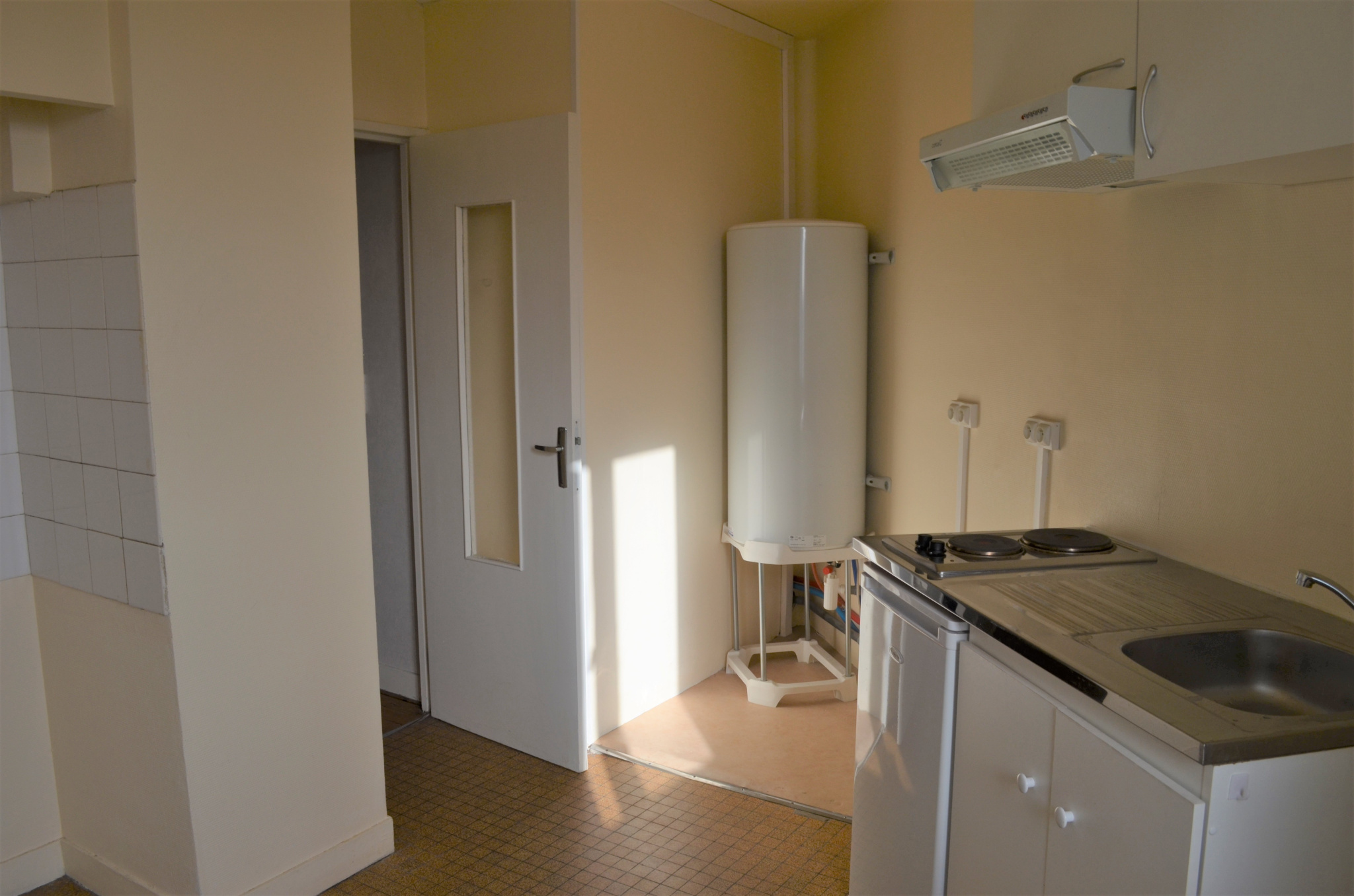 Une entrée avec placard, un séjour, une chambre, une cuisine séparée équipée (plaque de cuisson + réfrigérateur), une salle d'eau, wc