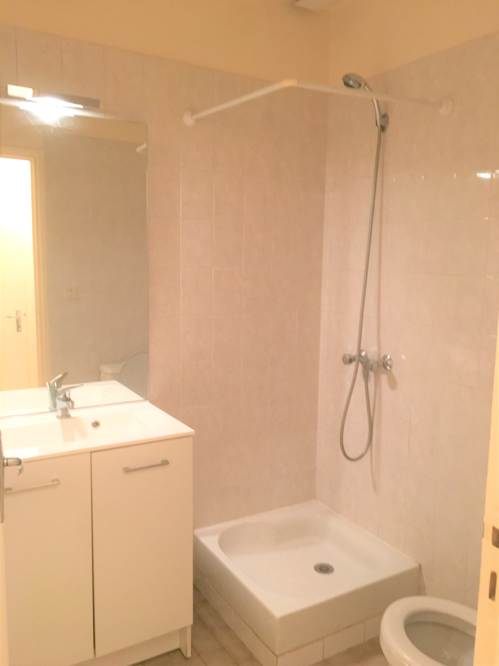 Quartier Carmes, appartement de type 2 - 27.50 m² avec cour privative comprenant une entrée sur séjour, une cuisine équipée (Plaques vitro + réfrigérateur), un dégagement avec placard, une chambre, une salle d'eau avec wc