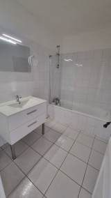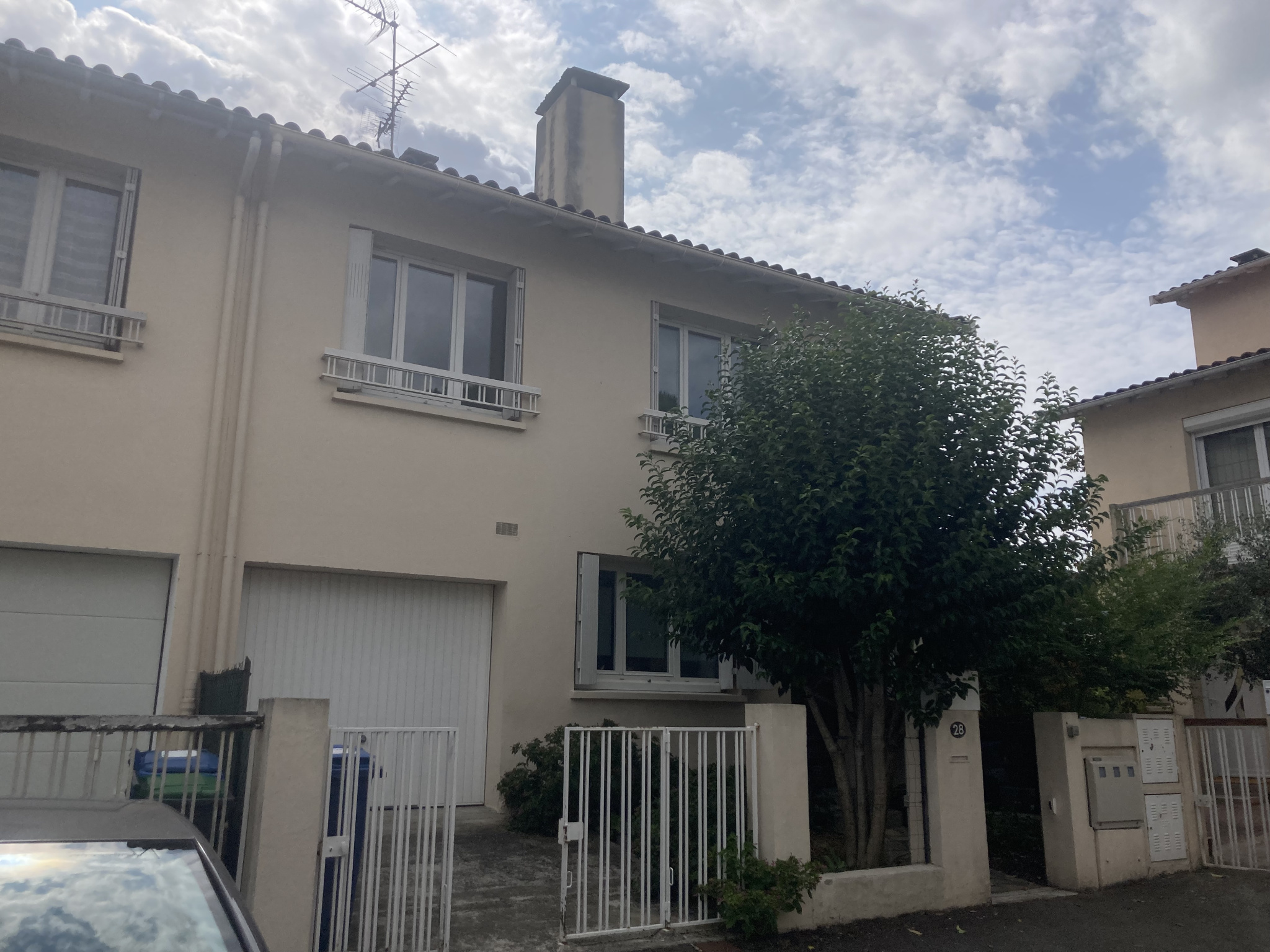Agréable maison type 5 de 105 m² avec garage et jardn privatif comprenant, un eentrée avec placard, wc, séjour donnant sur terrasse et jardin, une cuisine non équipée avec grand placard donnant accès au garage